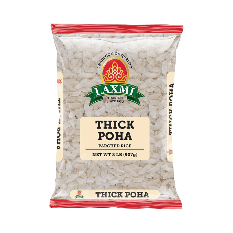 Thick poha flakes with a clean, mild flavor and firm texture. Naturally versatile, they soften evenly and are ideal for savory breakfasts, snacks, and traditional preparations.